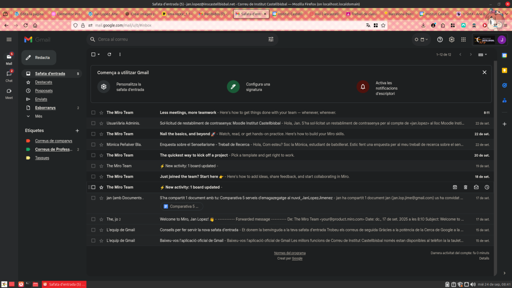 First, I logged in on my phone to link my accounts and ensure proper synchronization between devices. Then, I created labels to categorize emails according to their origin messages from classmates, teachers, and assignments. This organization helps keep the inbox structured and allows faster and more efficient access to information.