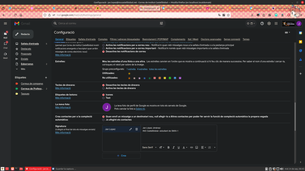 Finally, I created my email signature, including my full name, the institution where I study, the degree, and the academic year, to give my messages a professional appearance.