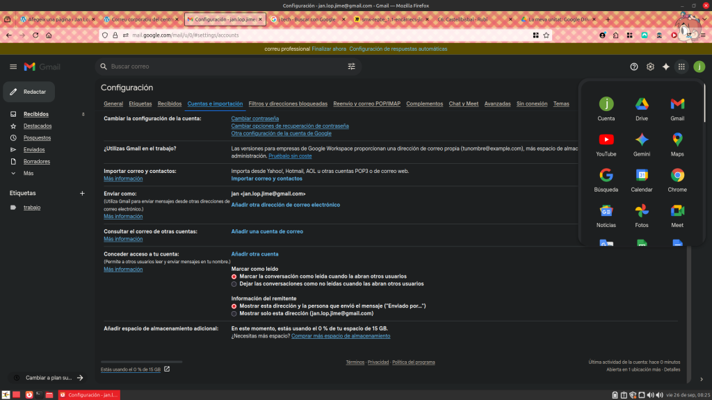 A la imatge veiem que tots els serveis de Google estan vinculats i que puc utilitzar