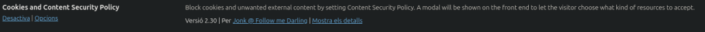 Per posar galetes nomes vaig tindre que instalar un plug in