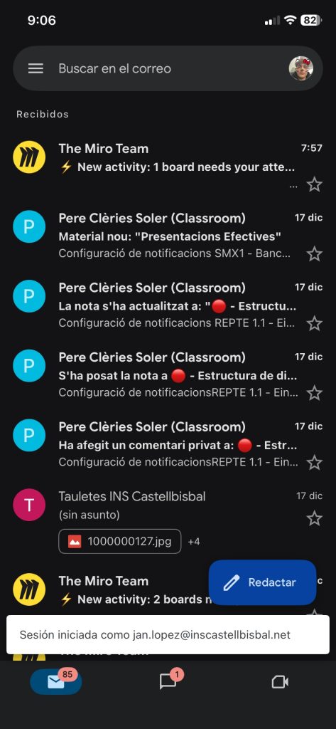 segudament, en iniciar sessió, em van sortir tots els meus correus i el xat